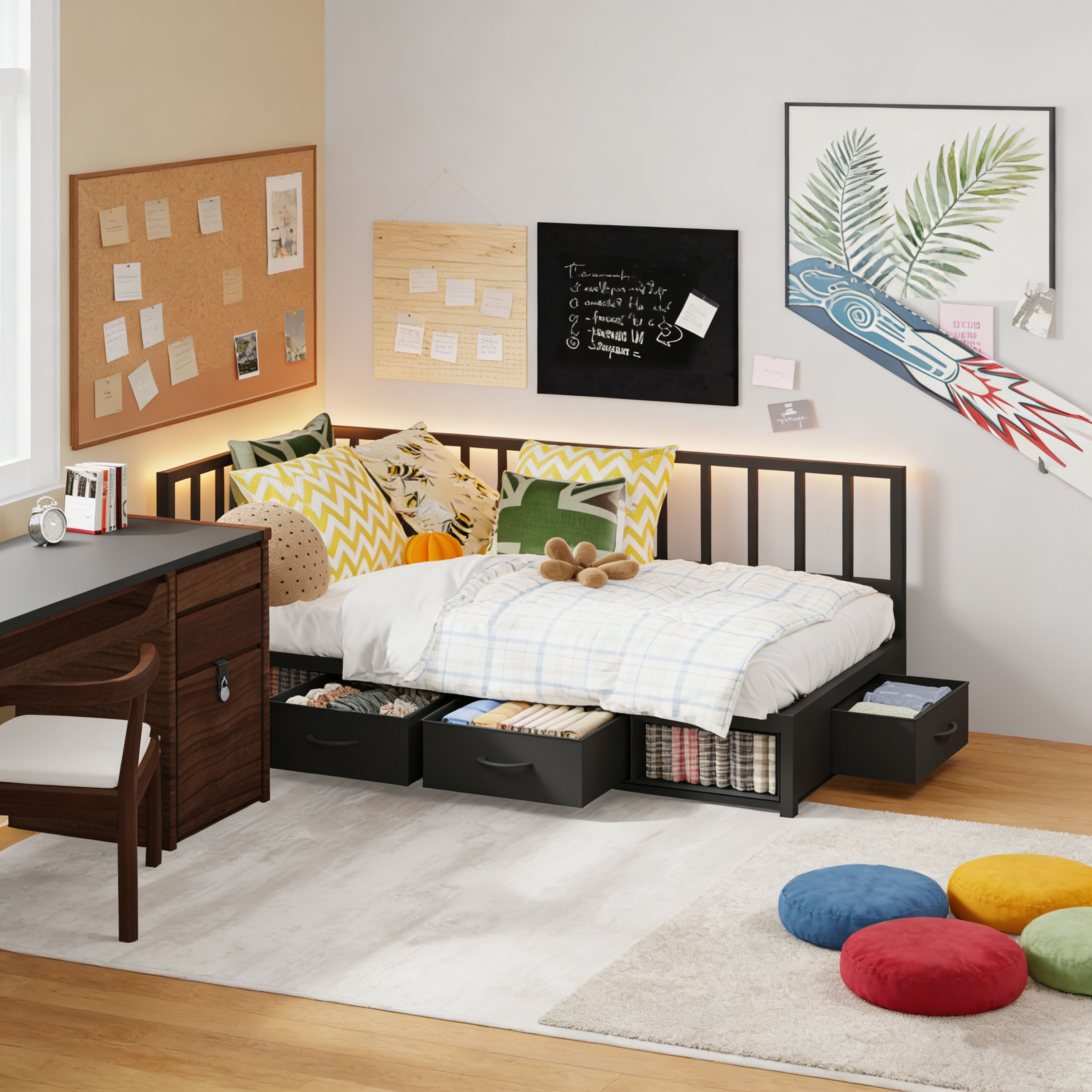 Ample Storage Space: The daybed with storage has 3 Deep Drawers+2 open cubby, easy to store sheets, clothes, books and other items, more space-saving.