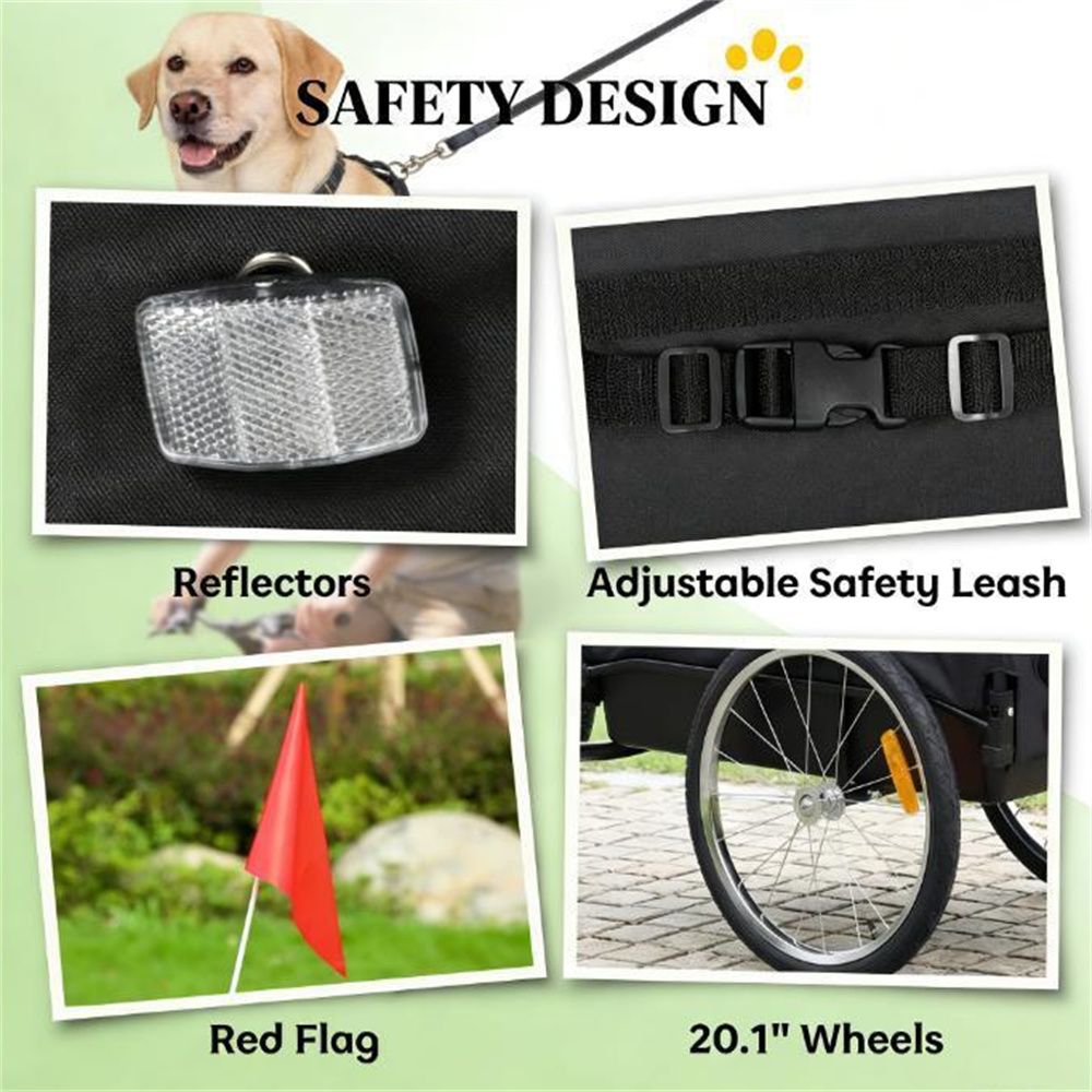 - Includes reflectors, a flag, and a safety leash for enhanced visibility and safety