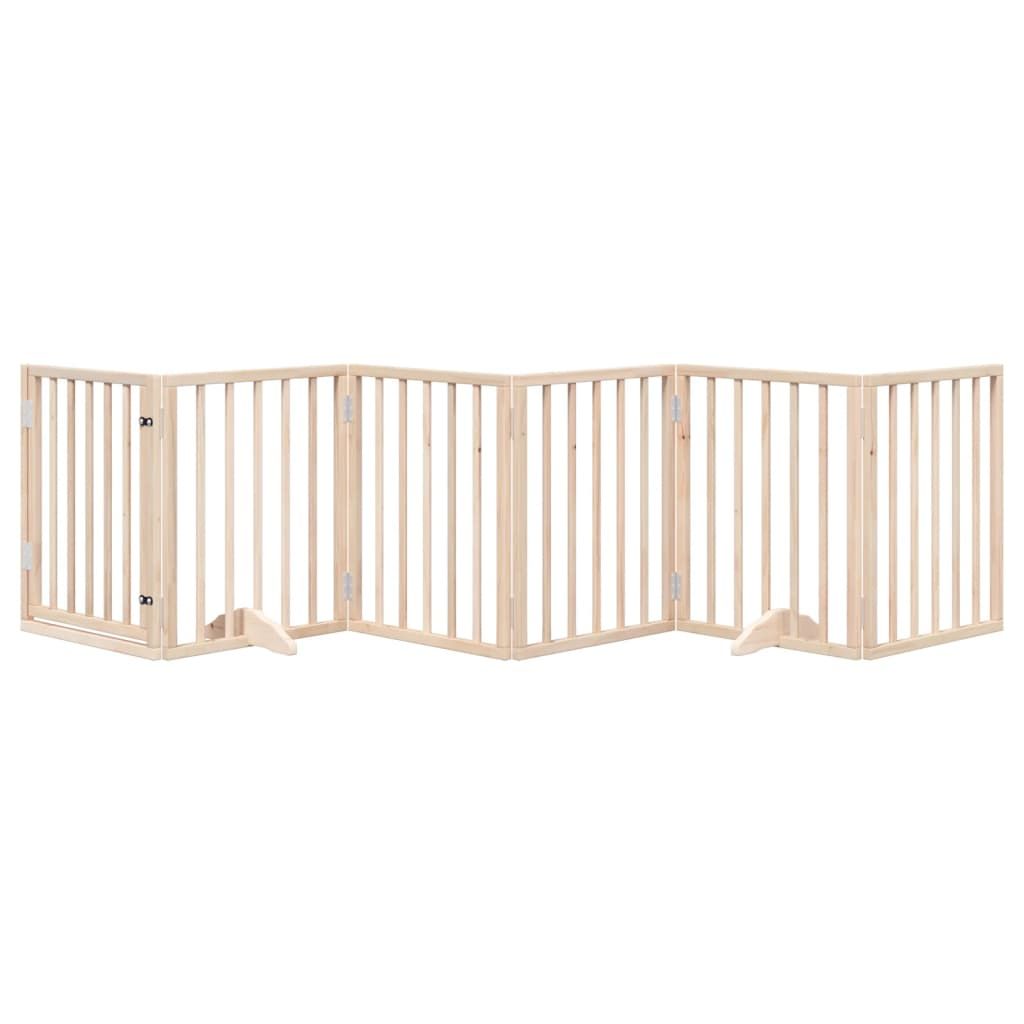 Dog Gate with Door Foldable 6 Panels 118.1 " Poplar Wood