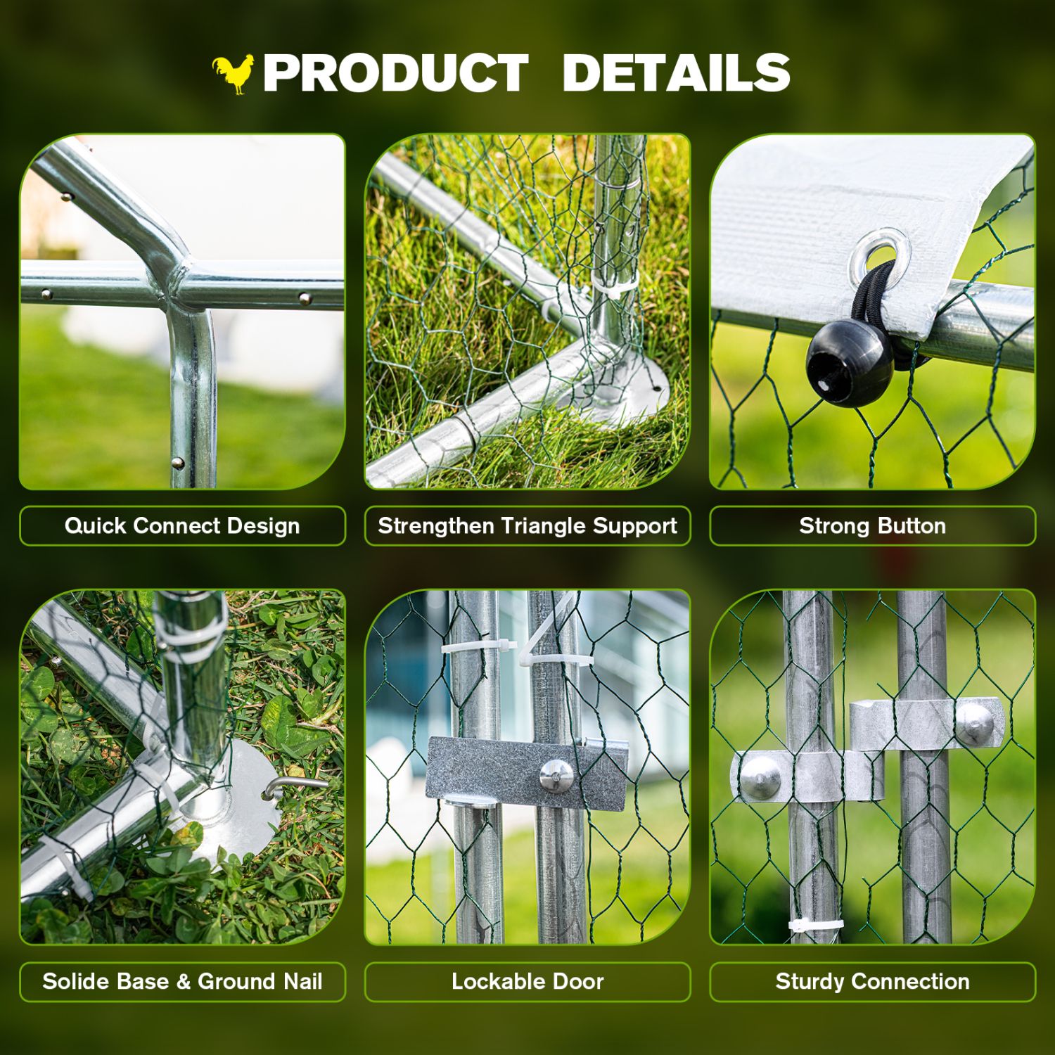 Large Metal Chicken Coop Walk-in Chicken Run with Waterproof Cover Outdoor Backyard Farm Anti-UV Spire Shaped Cage for Poultry, Ducks Large Metal Chicken Coop Walk-in Chicken Run with Waterproof Cover Outdoor Backyard Farm Anti-UV Spire Shaped Cage for Poultry, Ducks Large Metal Chicken Coop Walk-in Chicken Run with Waterproof Cover Outdoor Backyard Farm Anti-UV Spire Shaped Cage for Poultry, Ducks