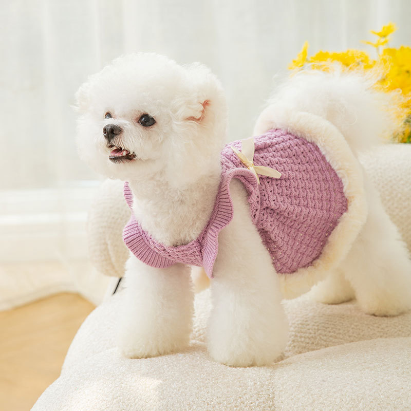 Warm and thickened dog clothes in autumn and winter; bow sweater skirt; dog sweater